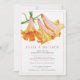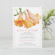 Lily floral and orange, pink vertical wedding invitation. Perfect for a simple botanical flower wedding. Edit this invitation with your own names and wedding details. Other matching items are available. Original watercolor hand painting and design by Sarah Trett for www.mylittleedenweddings.com