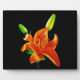 Vibrant orange lily in stark contrast against a dramatic black backdrop.