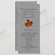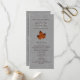 On a grey linen coloured background, and a large, monogrammed orange maple leaf accents this wedding program, making it perfect for the fall or autumn wedding.