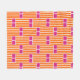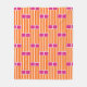 This medium fleece blanket has a mid-century modern design of orange vertical lines with pink rectangles above repeated over the design.