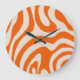 Orange Liquid Swirl Flow Groovy Stripe Y2K Pattern Large Clock