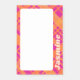 Sticky notes featuring a plaid pattern in bright orange and magenta, and your custom name.