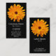 A clear stylish and attractive business card template with an attractive orange marigold motif. Main company details on the front, with name and personal contact on the back, with the same motif and style.