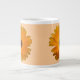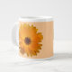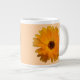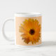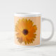 This awesome mug features a photo of a beautiful orange marigold flower with a dark centre. The background is a beautiful pale orange colour.