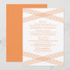 Simple and elegant Modern Deco Wedding Information Card with a striped criss-cross hatched art deco design in orange. This classic information card can be easily customised with your wedding details. For more customisation options, click on the Customise It button.
