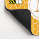 This mouse pad features an orange geometric honeycomb pattern with bees. Personalise it with your monogram.