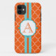 A cltanger right orange pattern decorates this monogrammed iPhone 5 case. Customise this case by changing the monogram letter to suit your needs. The design is from original art.