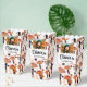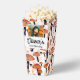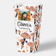 Orange Mushroom Fall Photo Birthday Party Favour Boxes. A lovely orange and black mushroom pattern in fall colours, a custom kid's name and photo.