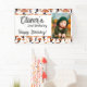 Orange Mushroom Pattern Fall Photo Birthday Party backdrop banner. A lovely orange and black mushroom pattern in fall colours, a custom kid's name and photo. A lovely Halloween or fall birthday party banner.