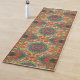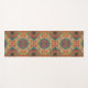 playful orange mushroom mandala pattern with green leaves and red flowers on yellow makes this fun yoga mat.