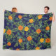 Orange & Navy Blue Peony & Rose Floral Wedding Fleece Blanket