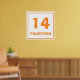 Orange number fourteen on white background with orange border. Help your little one learn the numbers with this number fourteen design.