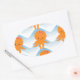 Orange Octopus And Blue Waves Pattern Oval Sticker