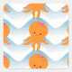 Orange Octopus And Blue Waves Pattern Square Sticker