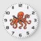 Orange Octopus Cartoon Ocean Sea Creature Large Clock