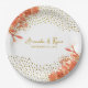 Orange Oleander Flowers Floral Beach Gold Glitter Wedding Paper Plates. Beautiful orange oleander flowers and faux gold glitter dots. Add bride and groom's names and the wedding date.