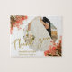 Orange Oleander Flowers Photo Thank you Wedding puzzle. Photo wedding puzzle with a wedding photo in a brushstroke frame, bride and groom names and wedding date. Personalise with your wedding photo and other details. An elegant and floral thank you puzzle - great as a gift for your wedding guests.