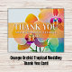 A tropical orchid floral beach Wedding Thank You Card. Colourful purple, orange, and blue botanical flowers contrasted by modern white lettering. Perfect for a destination wedding in Hawaii or to add an exotic touch. Non-photo wedding thank you cards.