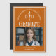This orange custom osteopathic medical school graduation announcement magnetic card for a DO or an osteopath doctor features an osteopathic medical caduceus symbol and your college photo for the class of 2025. Customise with your graduating year in white for a great personalised university graduate photograph magnet.