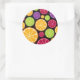 Stickers had a glossy finish which gave them a very professional look. The colour is perfect. And they are the exact size of my lip balm lids. Printing is crisp and clear. Will definitely be ordering again.
