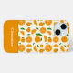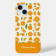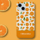A phone case with a slice, half and full orange pattern. A customisable first name or text of your choice is available at the bottom. A fresh gift for a friend who loves citrus.