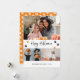 Custom orange photo happy Halloween card featuring three photos with a hand-lettered title on the front and an orange background with paw prints at the back. Easily personalise this orange pet photo Halloween card with your images, a family name and the year. This cute Halloween card can be turned into any colour using the customisation tool.