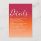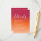Sunset sky inspired gradient ombre with viva magenta orange peach colour theme modern script personalised wedding enclosure card. This card is easily editable. If you need help with the customisation of this product or you need more matching products for this collection kindly message me via Zazzle.