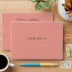 Simple chic minimalist monogrammed dusty orange peach personalised return address wedding invitation envelope with an elegant typography script and trendy line drawing floral botanical branch liner. +++++++++++ Personalise it with your return address and the bride's and groom's monogram name initials. ++++++++++ Suitable for trendy modern spring summer fall garden outdoor weddings.