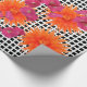 Orange Pink Flowers B/W Check Wrapping Paper