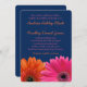Orange Pink Gerbera Daisy Navy Wedding Invitation
