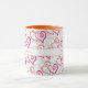 This fun design features two linked heart patterns. The top larger pattern has a pink and orange heart and behind are linked black outlined hearts with template text on both sides of the handle. Personalise the text or click customise to select a font style, size, and colour you prefer. Select from a variety of mug styles to fit your taste.