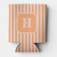 Orange & Pink Stripes Monogram Nautical Sailing Can Cooler
