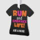 Run and Embrace Life text T-shirts, hoodies, magnets, mousepads, cards, stickers, key chains, buttons, magnets, paper plates and napkins, gift bags, candy tins, watches, and many other items with a bright pink and orange design. These running theme products make great gifts for anyone who runs for fun, runs track, marathons, half marathons, 10Ks, or 5Ks!