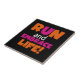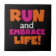 Run and Embrace Life text T-shirts, hoodies, magnets, mousepads, cards, stickers, key chains, buttons, magnets, paper plates and napkins, gift bags, candy tins, watches, and many other items with a bright pink and orange design. These running theme products make great gifts for anyone who runs for fun, runs track, marathons, half marathons, 10Ks, or 5Ks!