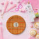 Orange Plaid & Brown Kraft Rustic Monogram Initial Paper Plate