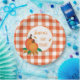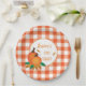 This farmhouse style orange and white paper plates are perfect for any fall celebration (baby shower , birthday , fundraising , Halloween , Thanksgiving , Friendsgiving , etc) you might have coming up . It has a classic Gingham pattern , two pumpkins and a few brown autumn leaves . Personalise with a name and event information using the template .