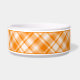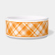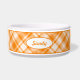 Lovely plaid pattern in orange colour scheme. There is also an oval shape banner that has a personalizable text area for the name of the pet. The font is a nice script font in orange colour.