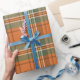Orange plaid tartan mix wrapping paper. Funky checkered gift wrap.