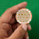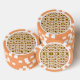 Orange poker chips with intricate floral mandala designs on both sides, featuring vibrant colors and symmetrical patterns, creating an elegant and artistic look.