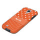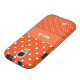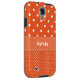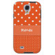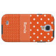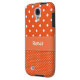 A fun Galaxy S4 case perfect for anyone. It features an orange background with large white dots on top and tiny white dots on bottom. You customise the text in the centre in matching white.
