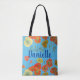 Orange Poppies blue Floral flowers Girl Name Bag