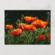 Postcard with photo of sunlit orange poppy flowers against dark background