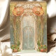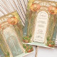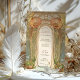 Welcome your guests with this enchanting Art Nouveau-inspired wedding invitation, featuring a grand floral arch adorned with vibrant orange poppies and delicate vines. The intricate stained-glass-style details in soft green, cream, and pastel hues create a harmonious and timeless look. Perfect for vintage, botanical, or garden-themed weddings, this design captures the essence of elegance and romance. The back showcases a continuation of the artistic style, offering a seamless blend of natural beauty and sophistication. Fully customisable to include your personal details.