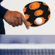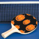 Orange pumpkin on black ping pong paddle
