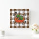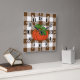Orange Pumpkin on White Brown Checkered Pattern Square Wall Clock