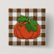 Orange Pumpkin on White Brown Chequered Pattern 15 Cm Square Badge