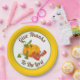 Orange pumpkin, yellow border fall Thanksgiving Paper Plate