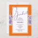 Damask band in purple and white bordered in orange on these graduation party invitations. SEE ENTIRE COLLECTION of pre-done colours in our store. **TIP: Change the background colour, click on customise further link, enter your colour hex code in the #xxxxxx box to match your school colours.