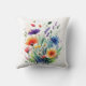 Orange Purple Red Blue Watercolor Flowers Cushion