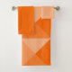 This towel set has a bath towel with a geometric design of triangles that form squares that look like a bird's eye view of pyramids.